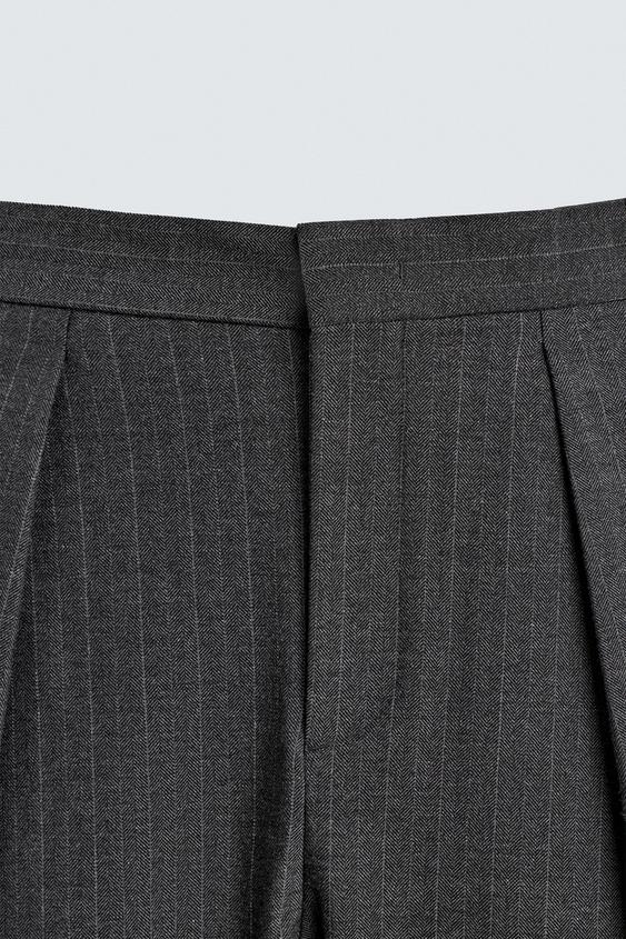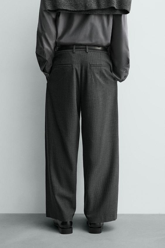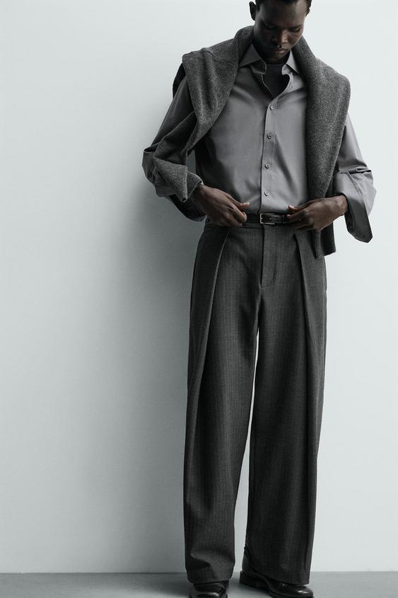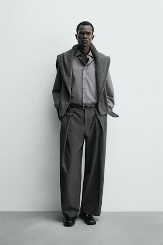 ZARA БРЮКИ WIDE FIT СО СКЛАДКАМИ, СЕРЫЙ МЕЛАНЖ