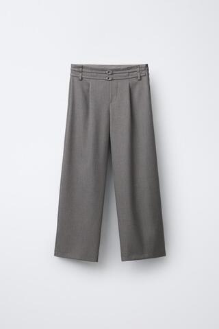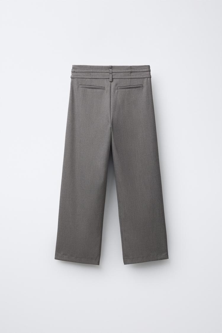 ZARA БРЮКИ WIDE LEG «ГУСИНАЯ ЛАПКА» С ДВОЙНЫМ РЕМНЕМ, СЕРО-КОРИЧНЕВЫЙ