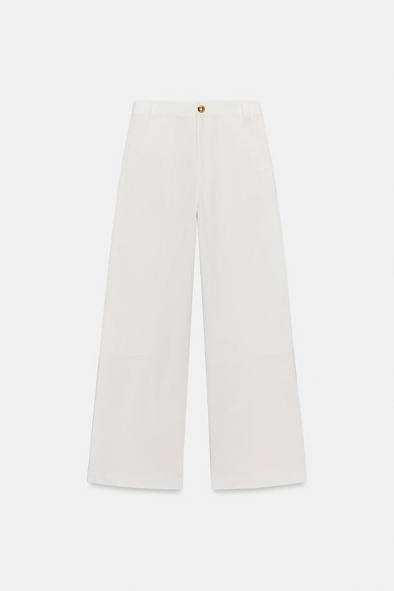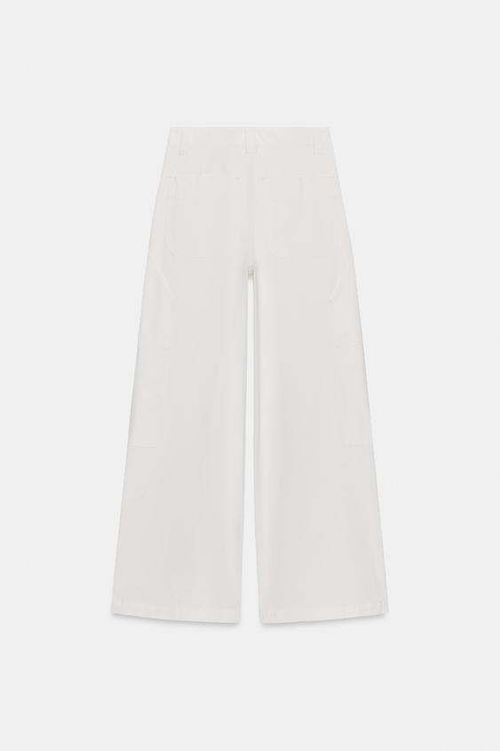 ZARA БРЮКИ WIDE-LEG ИЗ ХЛОПКА — ZW COLLECTION, ЖЕЛТОВАТО-БЕЛЫЙ