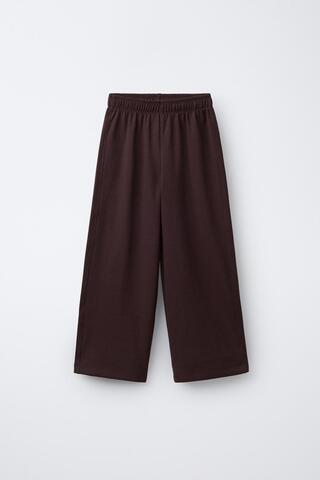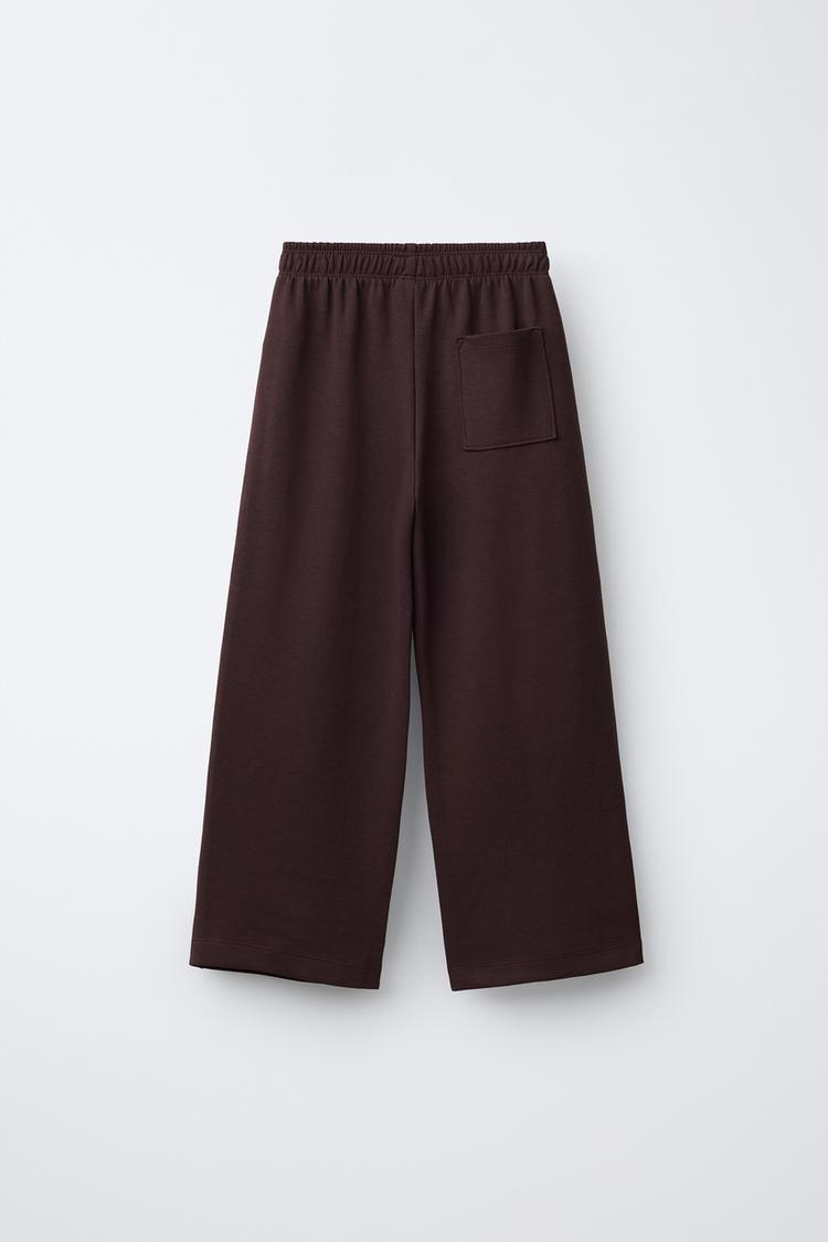 ZARA БРЮКИ WIDE LEG ИЗ ИНТЕРЛОКА, КОРИЧНЕВЫЙ