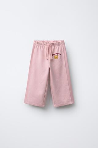 ZARA БРЮКИ WIDE LEG ИЗ МЯГКОЙ ТКАНИ С МИШКОЙ, РОЗОВЫЙ
