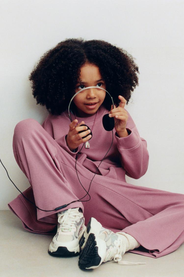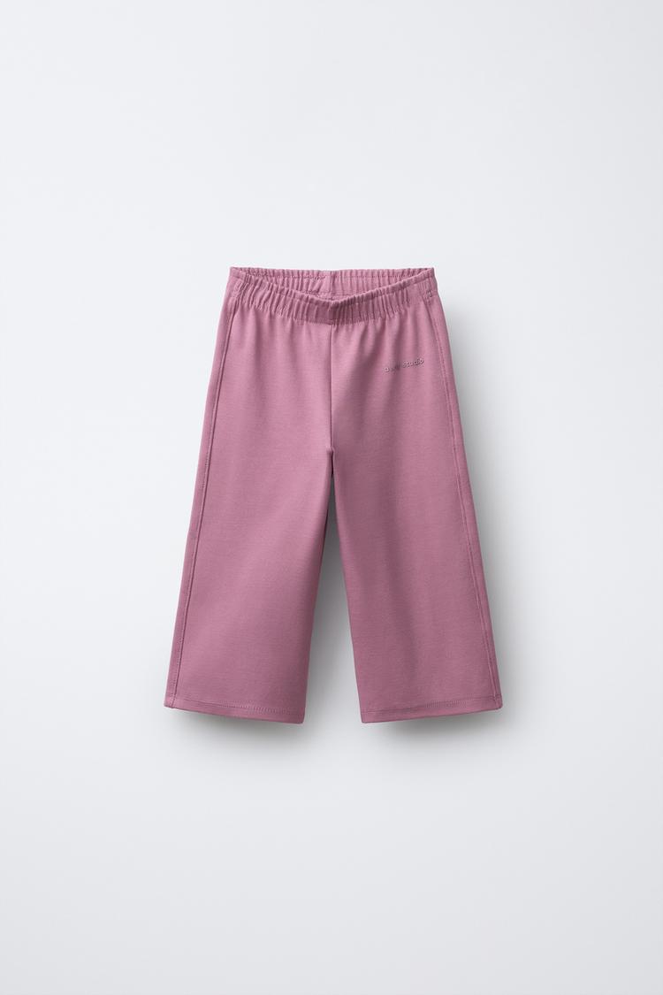 ZARA БРЮКИ WIDE LEG ИЗ МЯГКОЙ ТКАНИ С РЕЛЬЕФНОЙ НАДПИСЬЮ, ТЕМНО-РОЗОВЫЙ