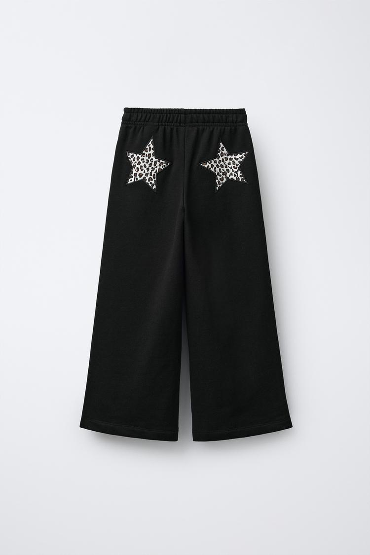 ZARA БРЮКИ WIDE LEG ИЗ МЯГКОЙ ТКАНИ СО ЗВЕЗДАМИ, ЧЕРНЫЙ