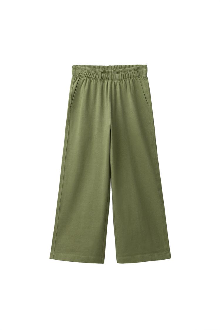 ZARA БРЮКИ WIDE LEG ИЗ ПЛОТНОГО ТРИКОТАЖА, ХАКИ
