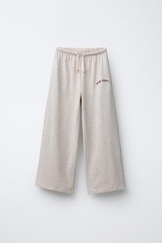 ZARA БРЮКИ WIDE LEG ИЗ ПЛОТНОЙ МЯГКОЙ ТКАНИ С ВЫШИВКОЙ, ПЕСОЧНЫЙ МЕЛАНЖ