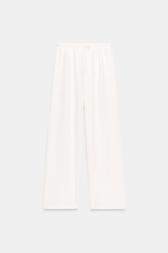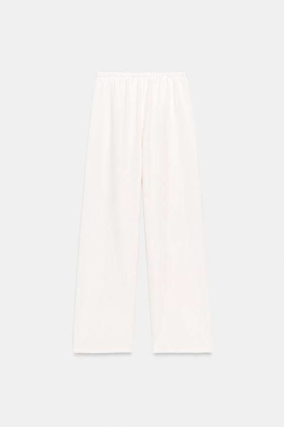 ZARA БРЮКИ WIDE LEG ИЗ ТКАНИ В ДЕРЕВЕНСКОМ СТИЛЕ, ЭКРЮ