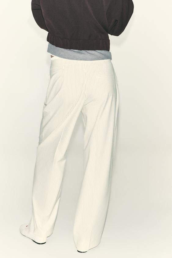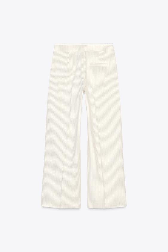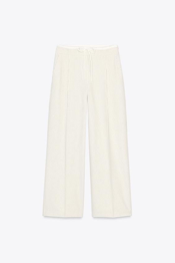 ZARA БРЮКИ WIDE LEG С ДВОЙНЫМ ПОЯСОМ, ЭКРЮ