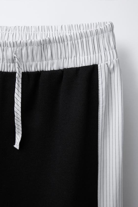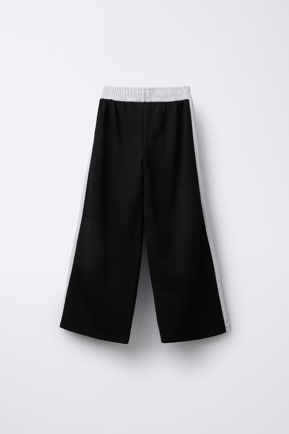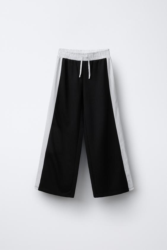 ZARA БРЮКИ WIDE LEG С ЛАМПАСАМИ В ПОЛОСКУ, ЧЕРНЫЙ
