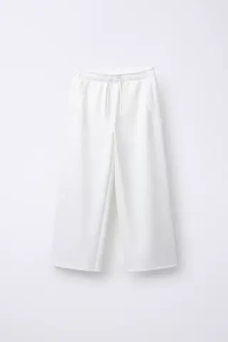 ZARA БРЮКИ WIDE LEG С МОДАЛОМ, БЕЛЫЙ