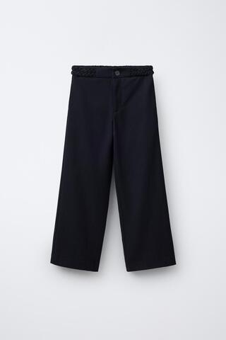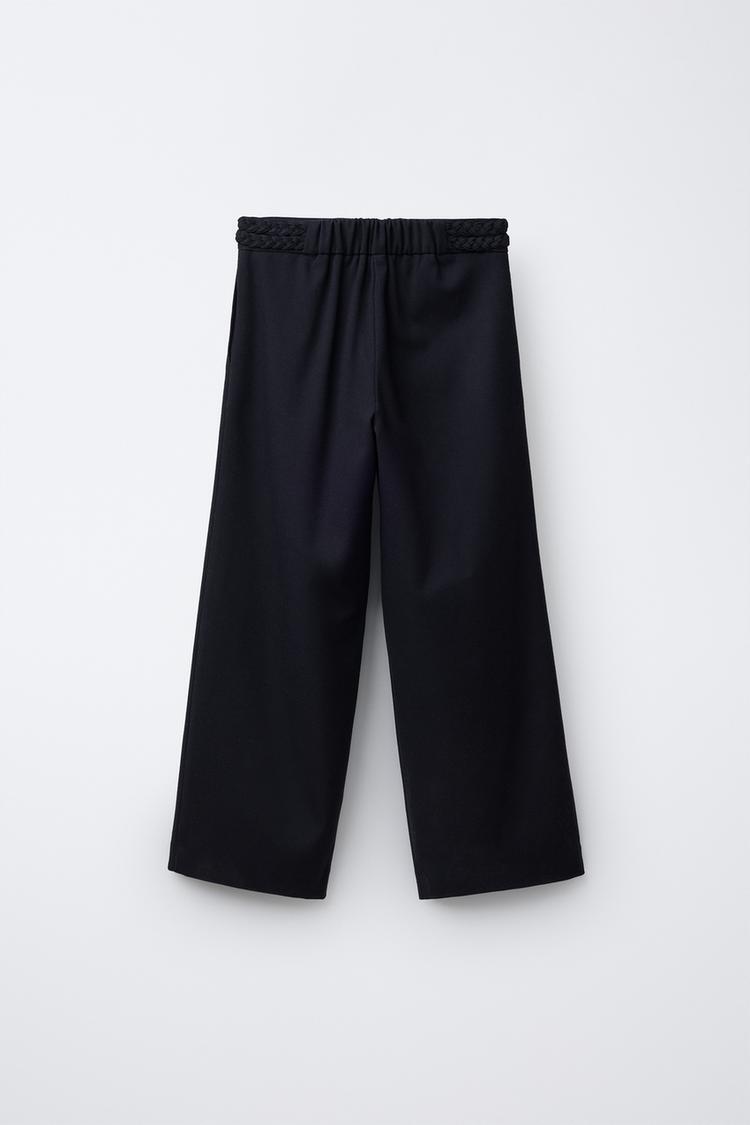 ZARA БРЮКИ WIDE LEG С ПЛЕТЕНЫМ ДЕКОРОМ, МОРСКОЙ СИНИЙ