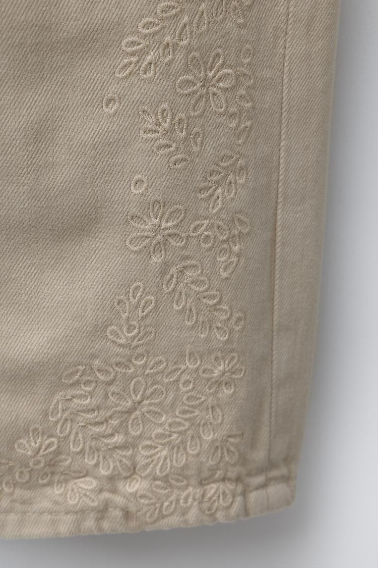 ZARA БРЮКИ WIDE LEG С ВЫШИВКОЙ, БЕЖЕВЫЙ