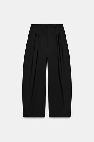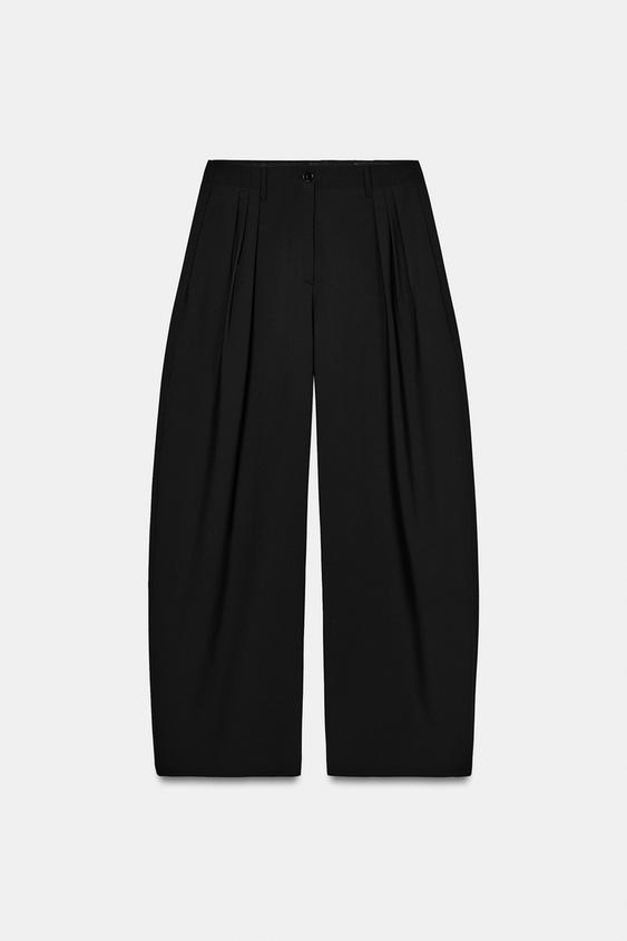 ZARA БРЮКИ WIDE LEG С ЗАЩИПАМИ — ZW COLLECTION, ЧЕРНЫЙ