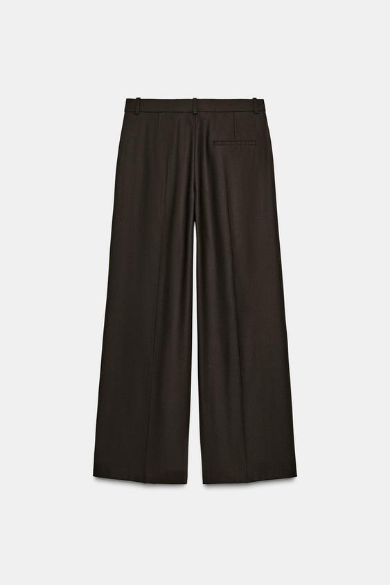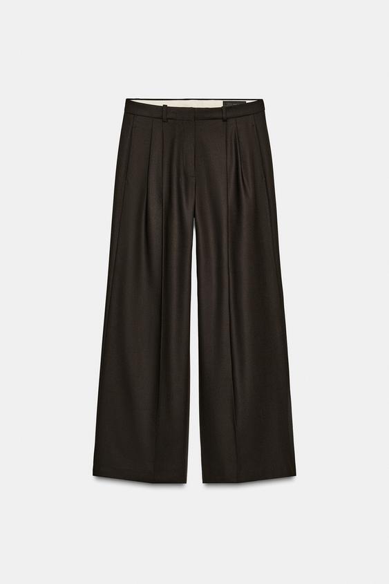 ZARA БРЮКИ WIDE LEG С ЗАЩИПАМИ — ZW COLLECTION, КОРИЧНЕВЫЙ