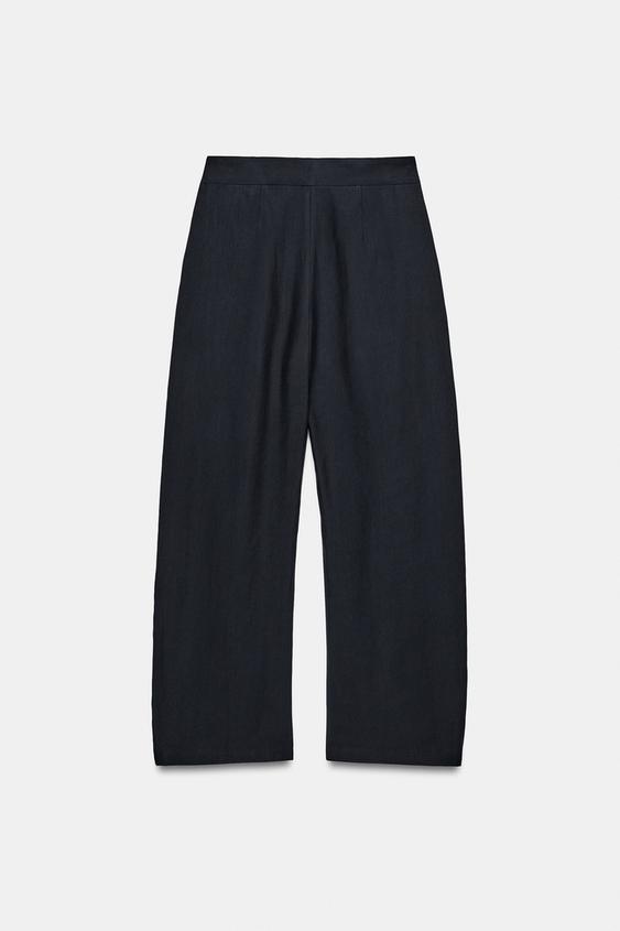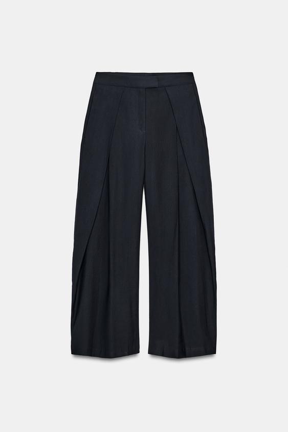 ZARA БРЮКИ WIDE-LEG С ЗАЩИПАМИ — ZW COLLECTION, МОРСКОЙ СИНИЙ