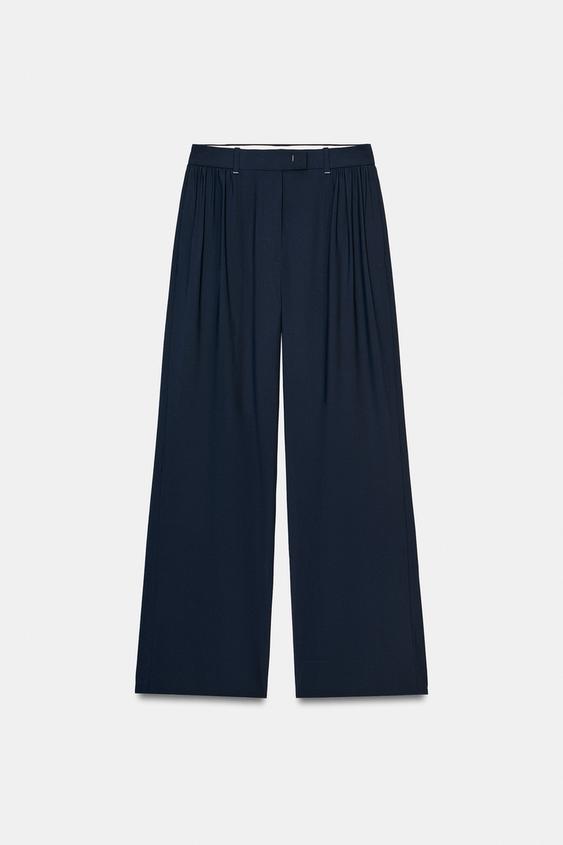 ZARA БРЮКИ WIDE LEG С ЗАЩИПАМИ — ZW COLLECTION, МОРСКОЙ СИНИЙ
