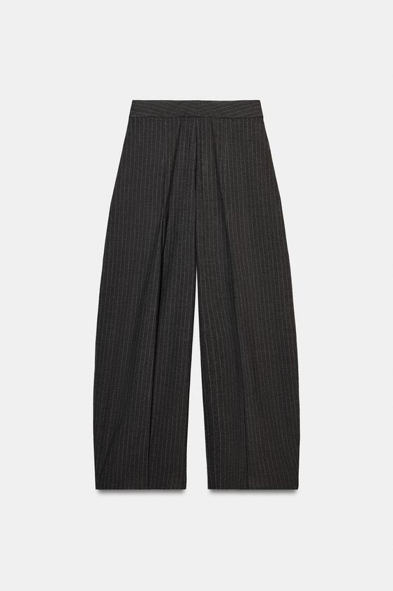 ZARA БРЮКИ WIDE LEG С ЗАЩИПАМИ — ZW COLLECTION, СЕРЫЙ
