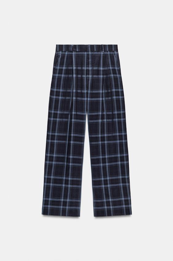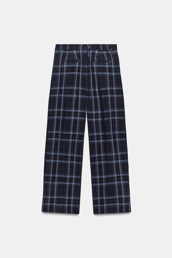 ZARA БРЮКИ WIDE-LEG В КЛЕТКУ — ZW COLLECTION, МОРСКОЙ СИНИЙ