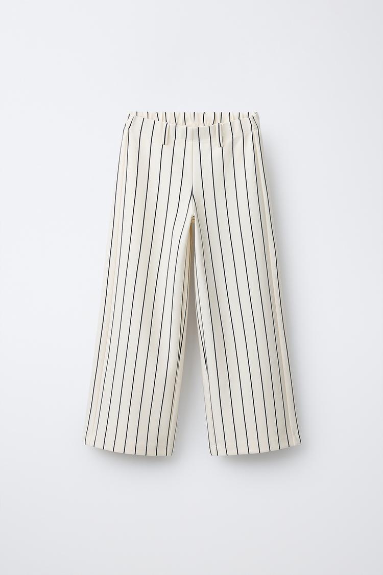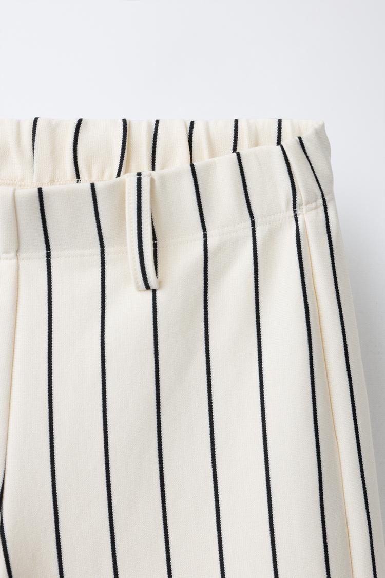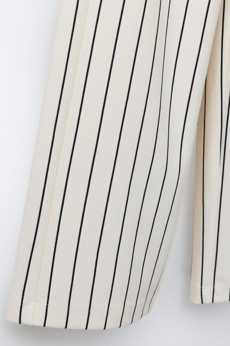 ZARA БРЮКИ WIDE LEG В ПОЛОСКУ ИЗ ТРИКОТАЖА ПУНТО РОМА, ЭКРЮ