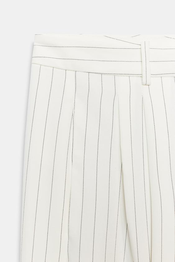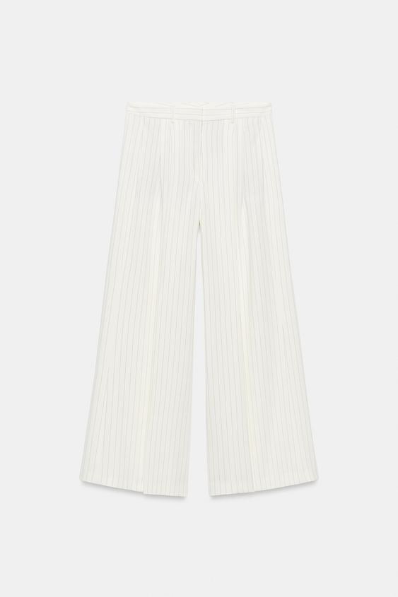 ZARA БРЮКИ WIDE LEG В ПОЛОСКУ — ZW COLLECTION, ПАСТЕЛЬНО-ЖЕЛТЫЙ
