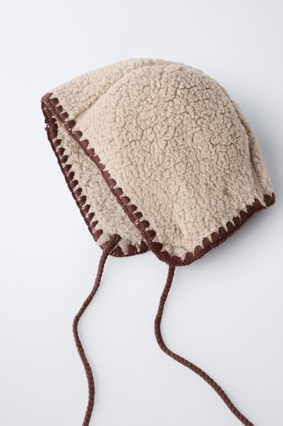 ZARA ЧЕПЧИК ИЗ ИСКУССТВЕННОЙ ОВЧИНЫ С КОНТРАСТНЫМИ КРОМКАМИ, БЕЖЕВЫЙ