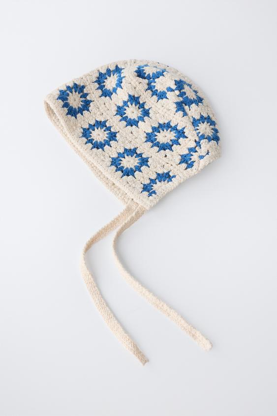 ZARA ЧЕПЧИК КРЮЧКОМ, ЭКРЮ/СИНИЙ
