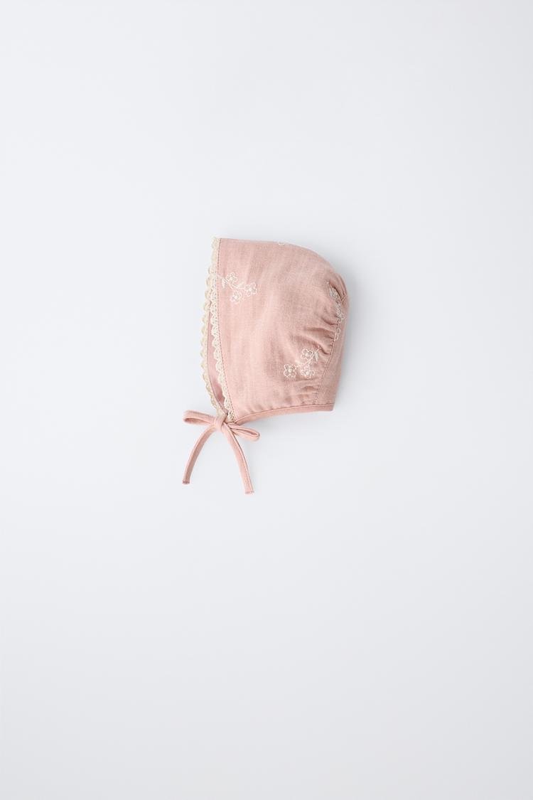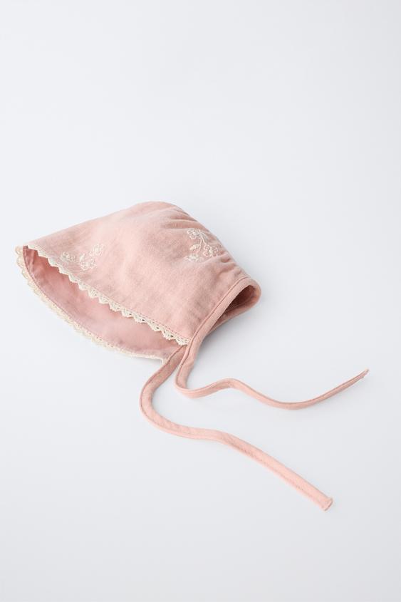 ZARA ЧЕПЧИК С ЦВЕТОЧНОЙ ВЫШИВКОЙ, МЯГКИЙ РОЗОВЫЙ