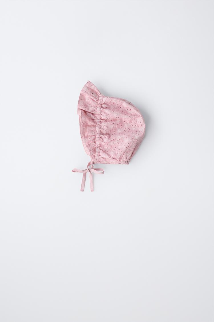 ZARA ЧЕПЧИК СО ШВЕЙЦАРСКОЙ ВЫШИВКОЙ, РОЗОВЫЙ