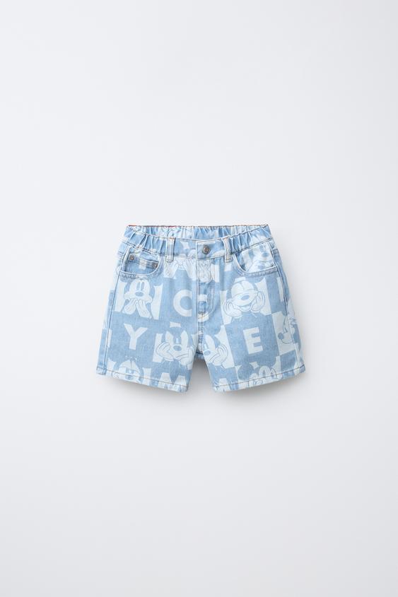ZARA ДЕНИМОВЫЕ БЕРМУДЫ С ШАХМАТНЫМ ПРИНТОМ MICKEY MOUSE © DISNEY, ГОЛУБОЙ