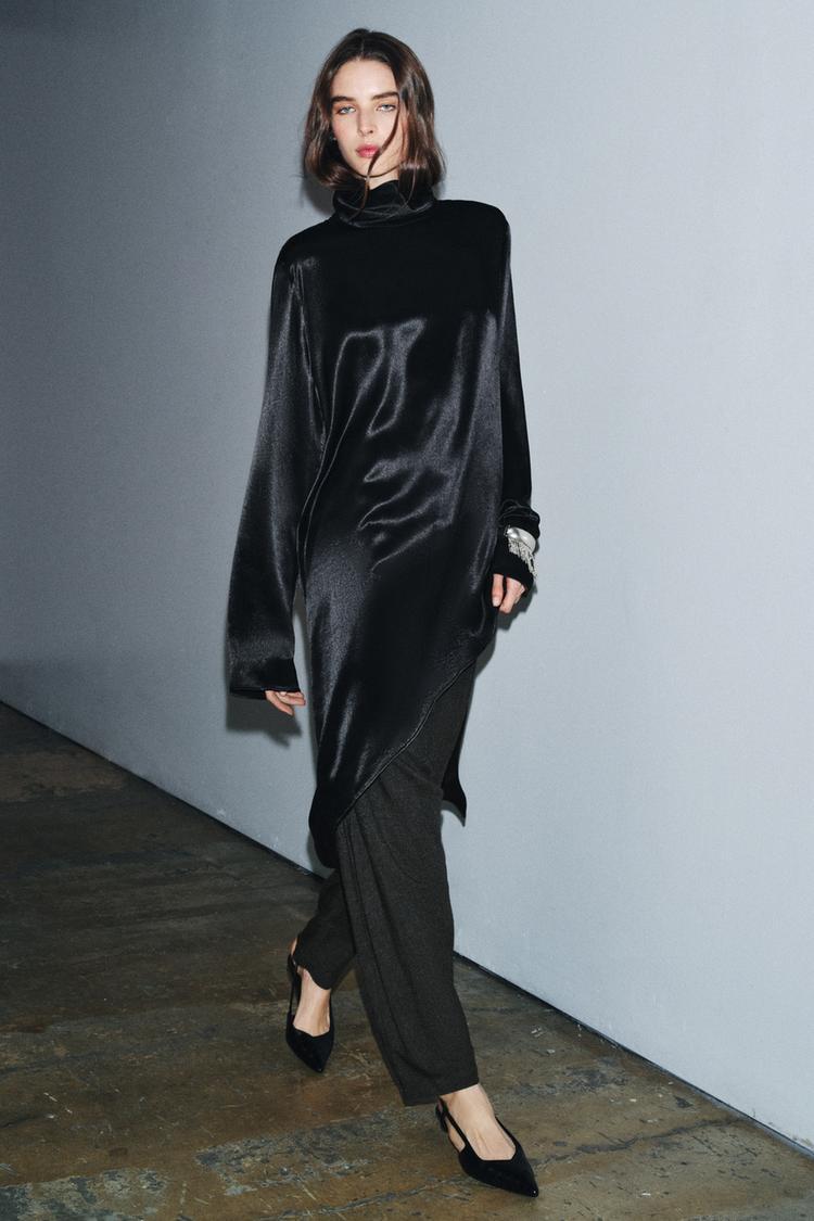 ZARA ДЛИННАЯ АСИММЕТРИЧНАЯ БЛУЗА — ZW COLLECTION, ЧЕРНЫЙ