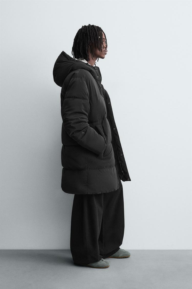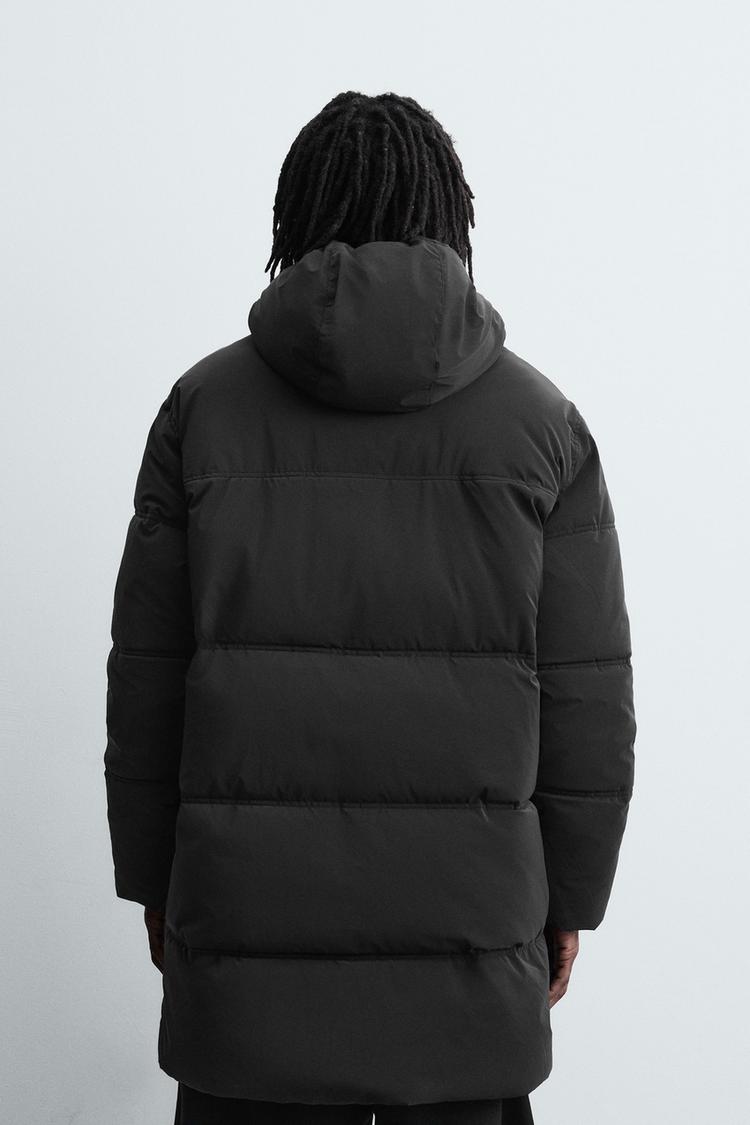 ZARA ДЛИННАЯ СТЕГАНАЯ КУРТКА, ЧЕРНЫЙ
