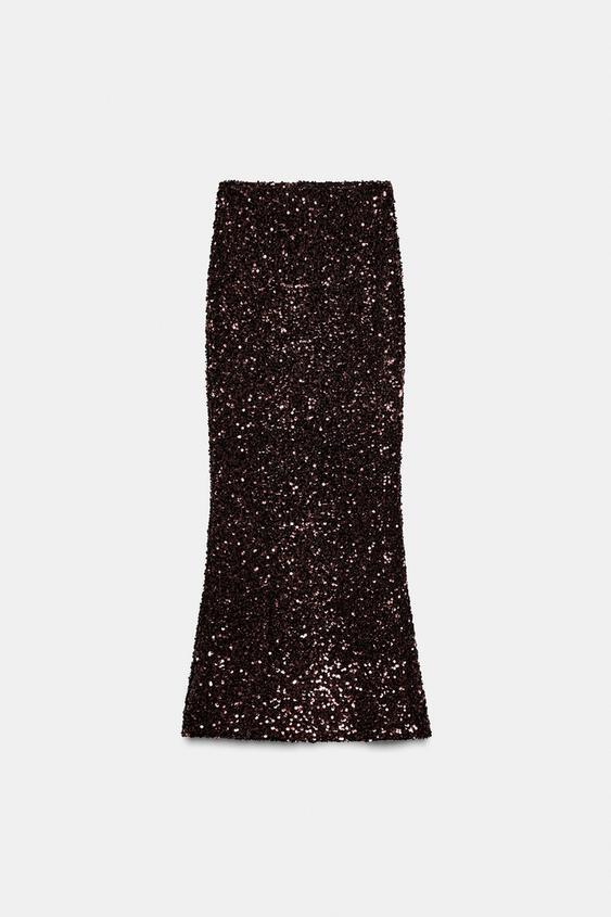 ZARA ДЛИННАЯ ЮБКА С ПАЙЕТКАМИ, КОРИЧНЕВЫЙ