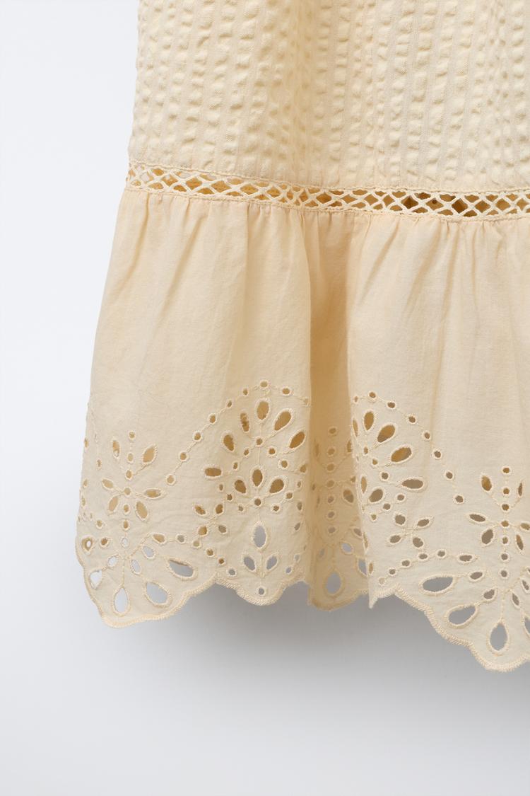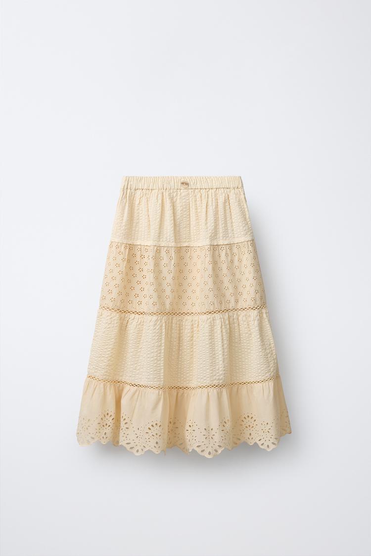 ZARA ДЛИННАЯ ЮБКА С ВЫШИВКОЙ ШИТЬЕ, ЦВЕТ СЛИВОЧНОГО МАСЛА
