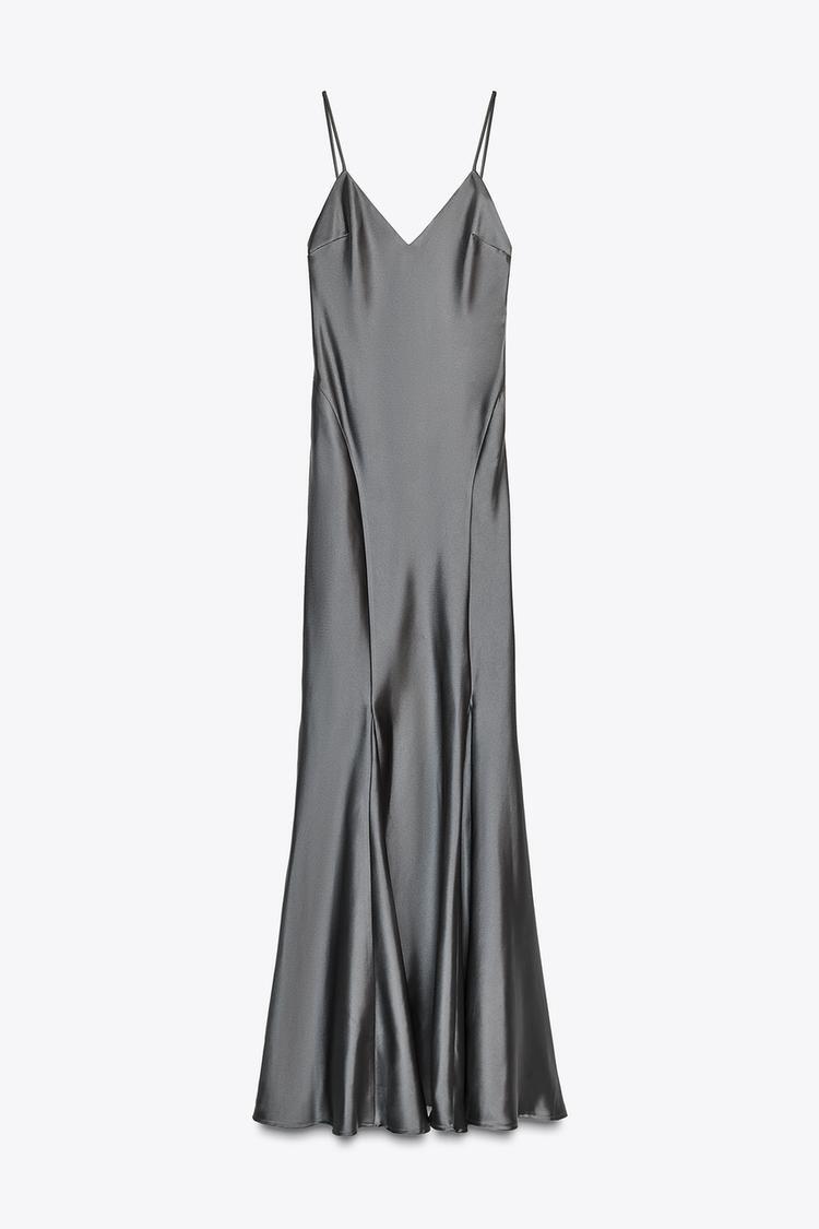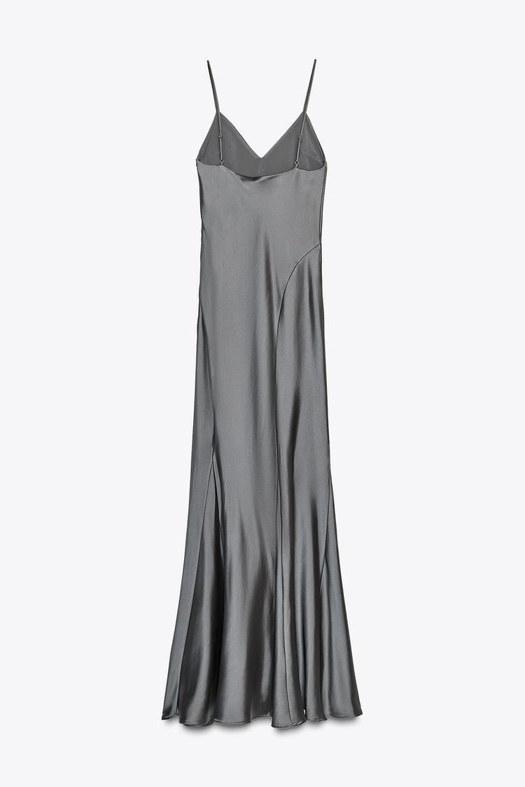 ZARA ДЛИННОЕ АТЛАСНОЕ ПЛАТЬЕ, УГОЛЬНЫЙ