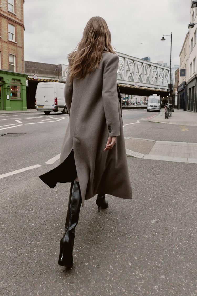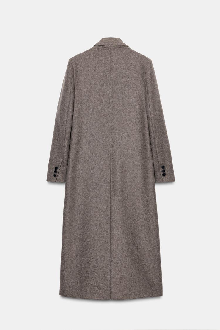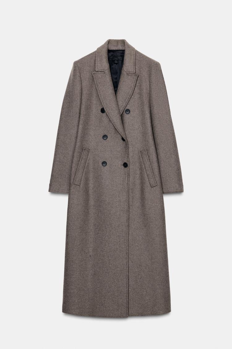 ZARA ДЛИННОЕ ДВУБОРТНОЕ ПАЛЬТО, ТЕМНЫЙ СЕРО-КОРИЧНЕВЫЙ