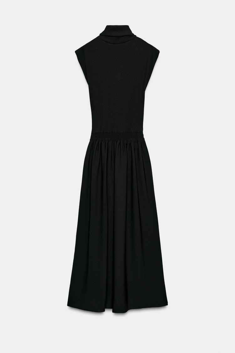 ZARA ДЛИННОЕ КОМБИНИРОВАННОЕ ПЛАТЬЕ, ЧЕРНЫЙ