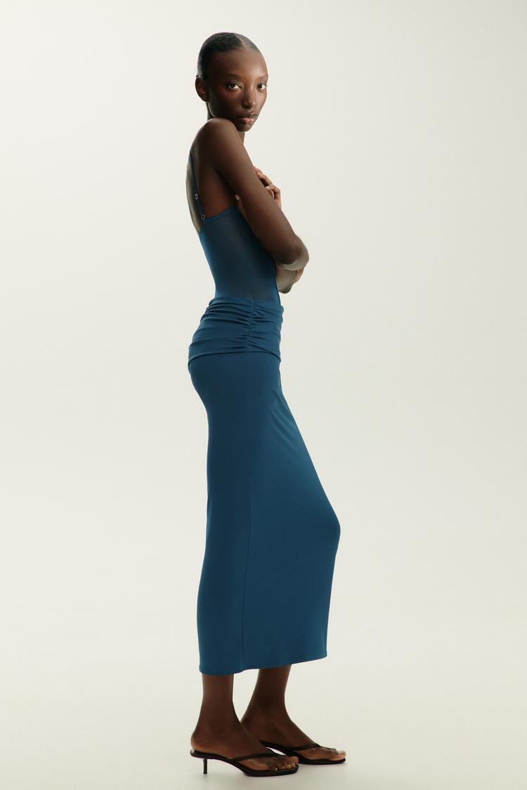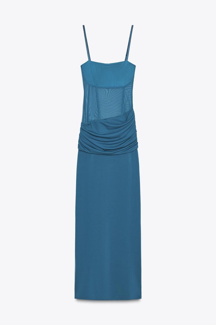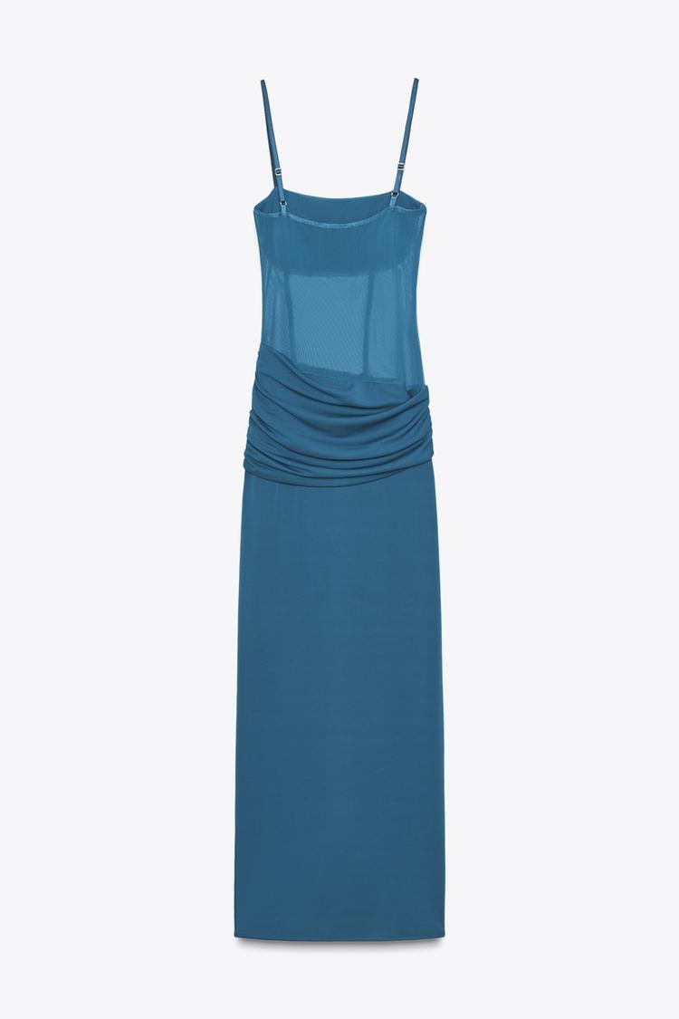 ZARA ДЛИННОЕ КОМБИНИРОВАННОЕ ПЛАТЬЕ, СИНИЙ