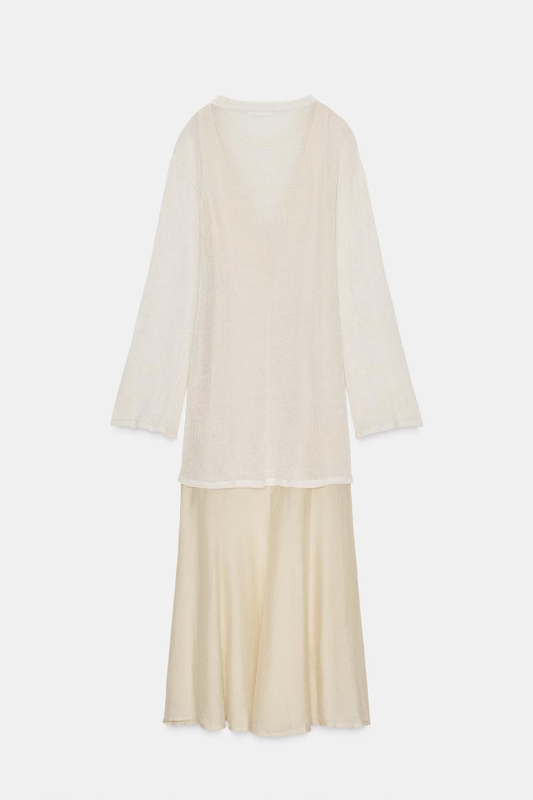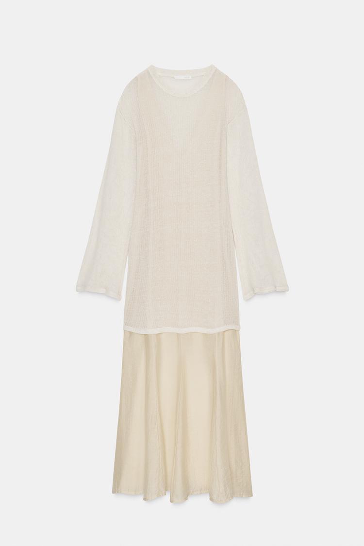 ZARA ДЛИННОЕ КОМБИНИРОВАННОЕ ПЛАТЬЕ, ЦВЕТ СЛИВОЧНОГО МАСЛА