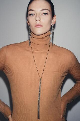 ZARA ДЛИННОЕ ОЖЕРЕЛЬЕ СО СТРАЗАМИ, ЦВЕТ СОСТАРЕННОГО ЗОЛОТА