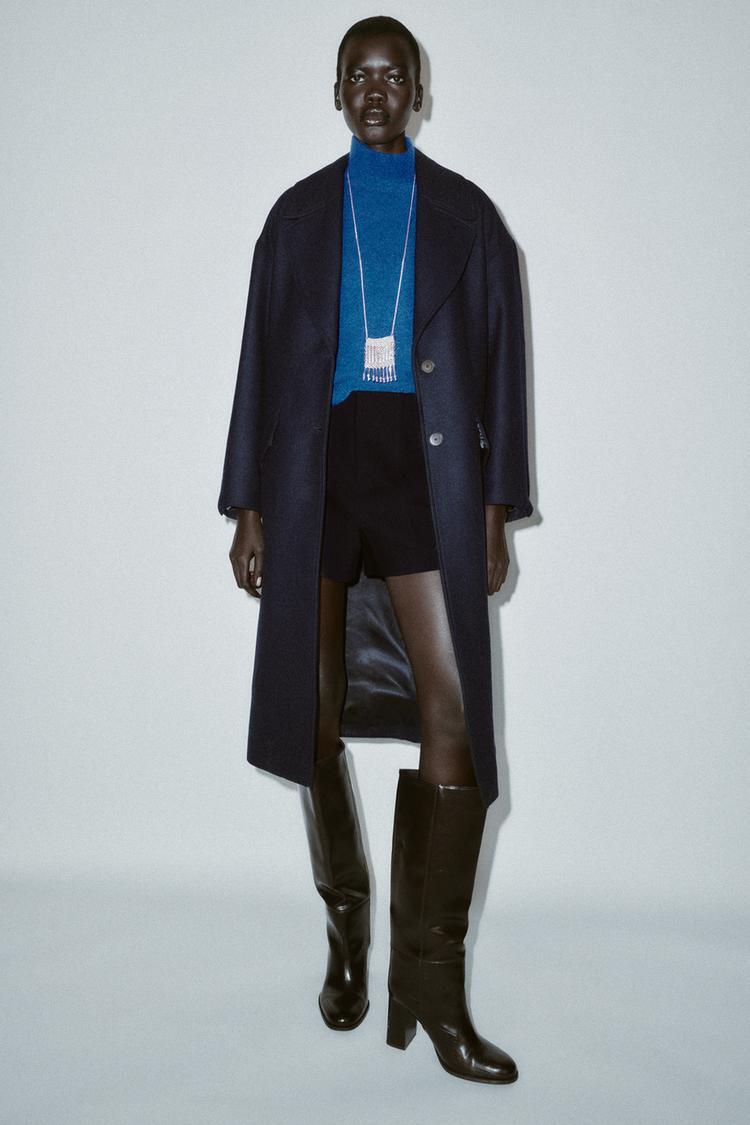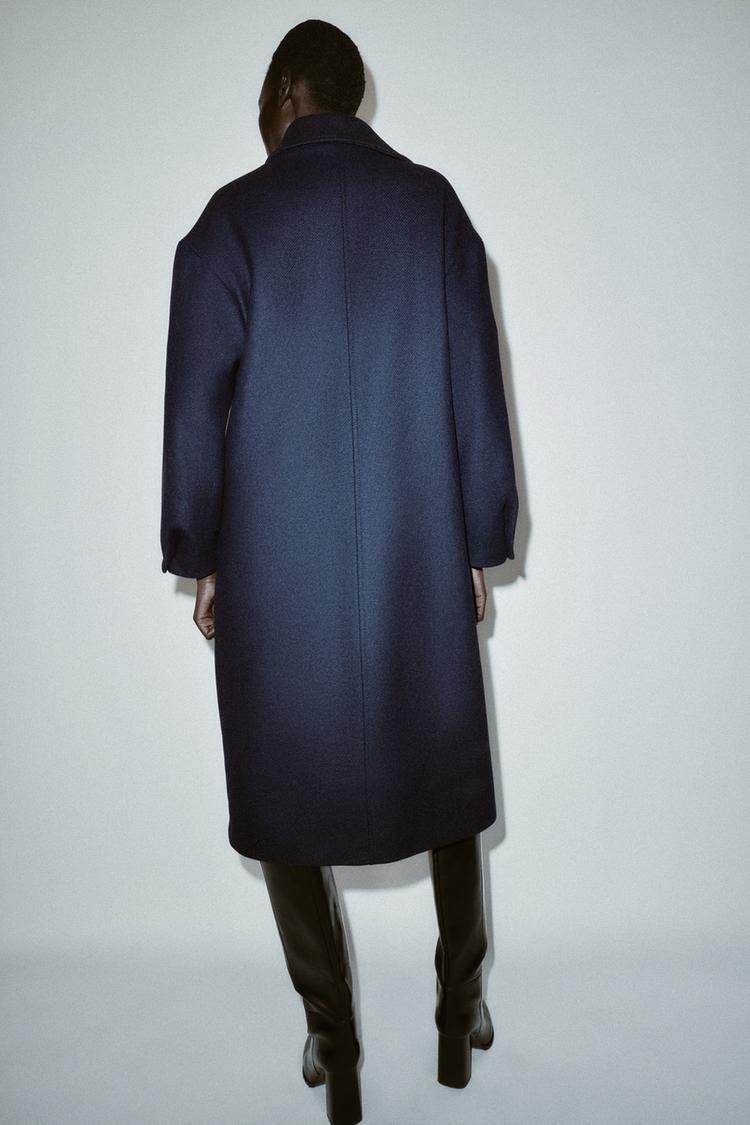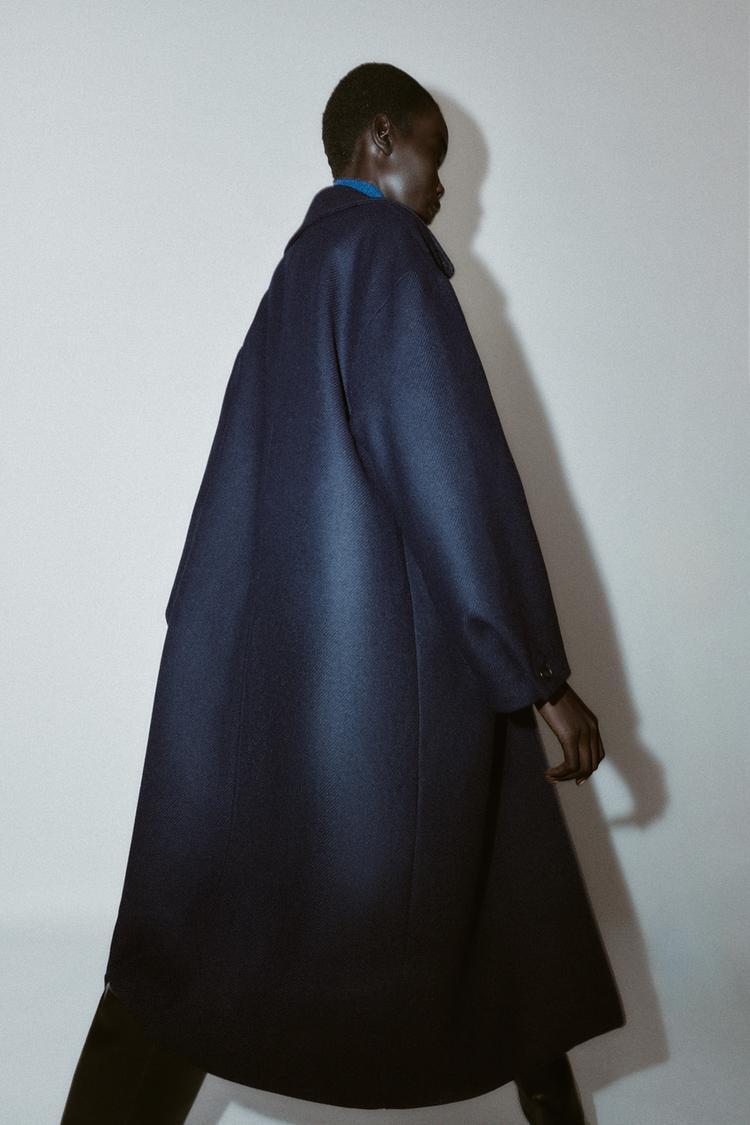 ZARA ДЛИННОЕ ПАЛЬТО ОВЕРСАЙЗ, МОРСКОЙ СИНИЙ