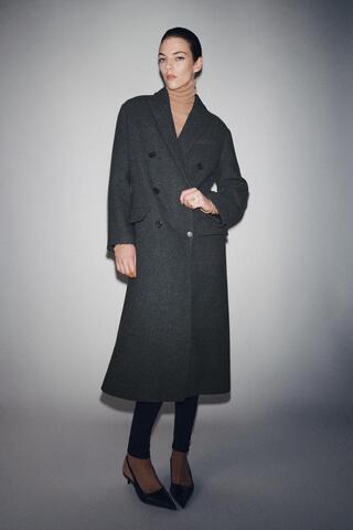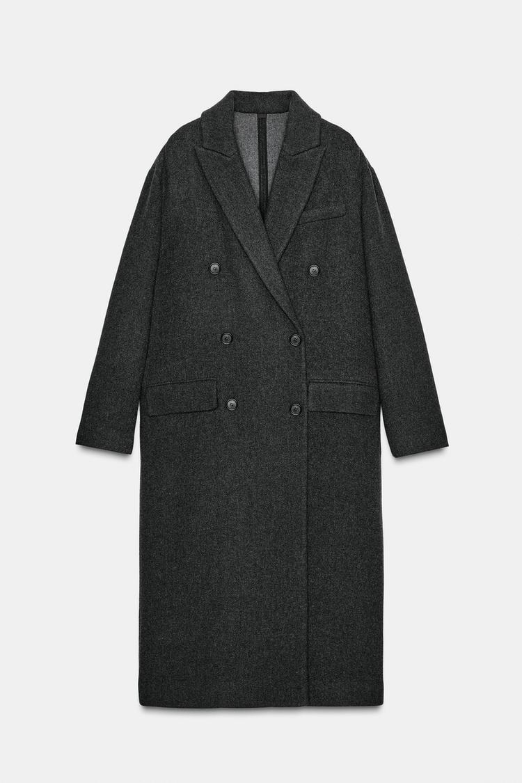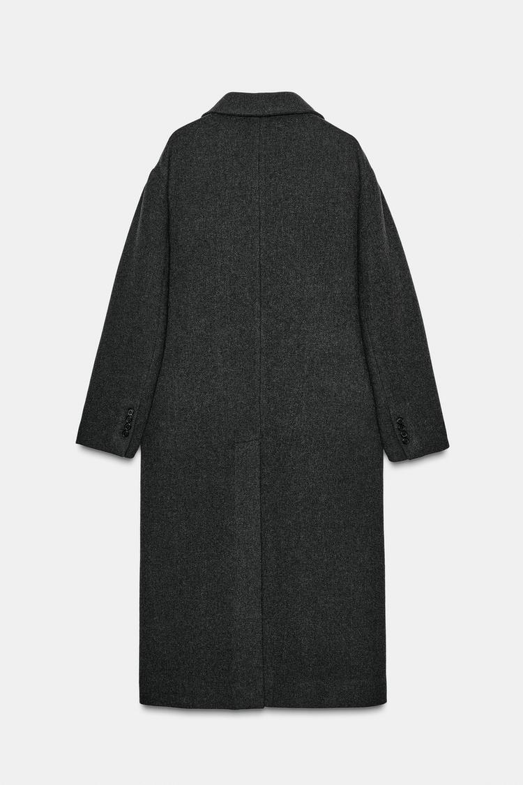 ZARA ДЛИННОЕ ПАЛЬТО ОВЕРСАЙЗ — ZW COLLECTION, СЕРЫЙ МЕЛАНЖ