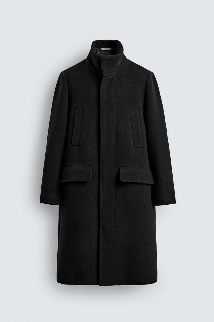 ZARA ДЛИННОЕ ПАЛЬТО С ШЕРСТЬЮ, ЧЕРНЫЙ