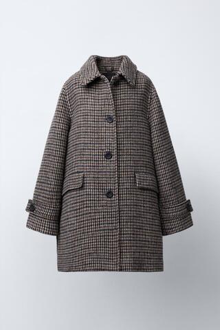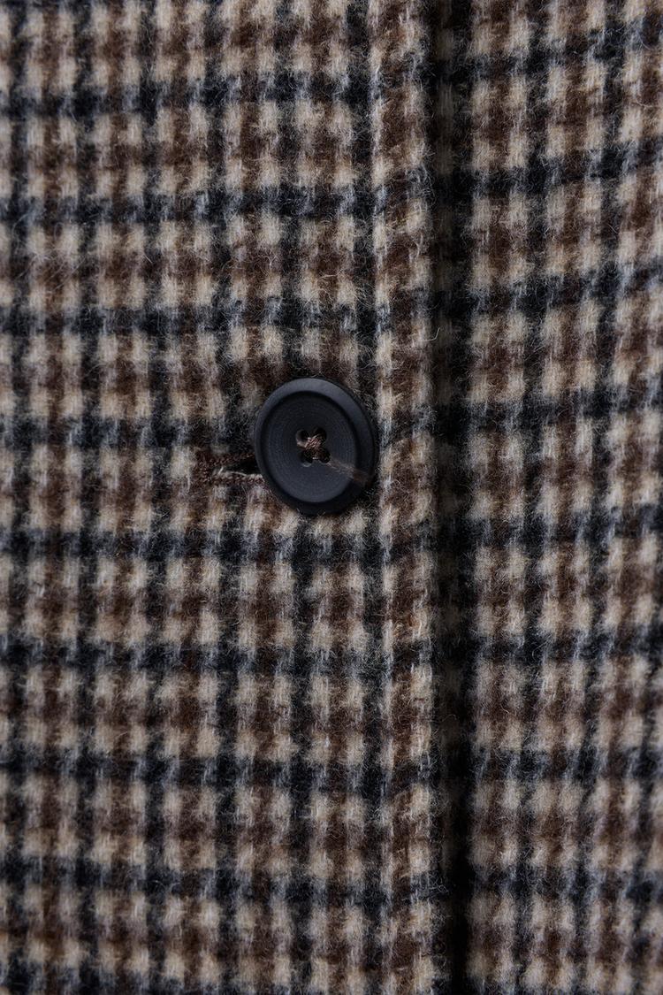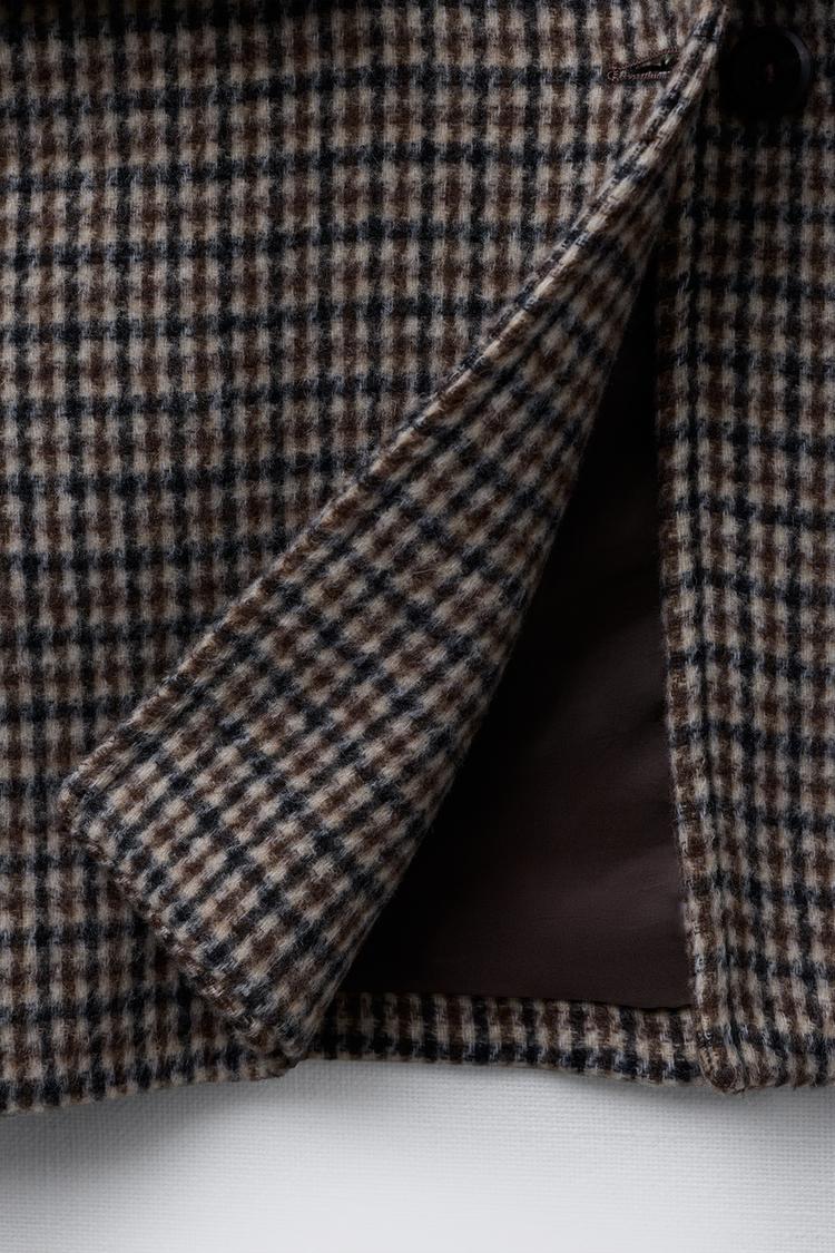 ZARA ДЛИННОЕ ПАЛЬТО В КЛЕТКУ ИЗ СМЕСОВОЙ ШЕРСТИ, КОРИЧНЕВЫЙ