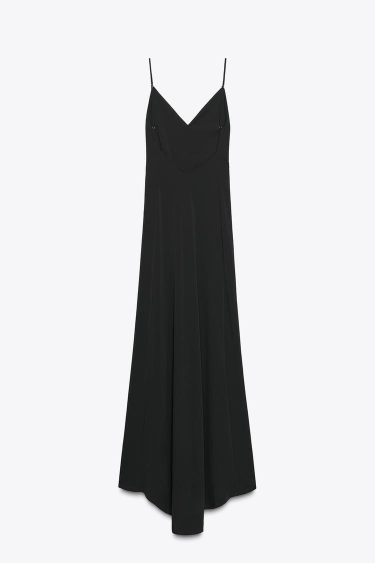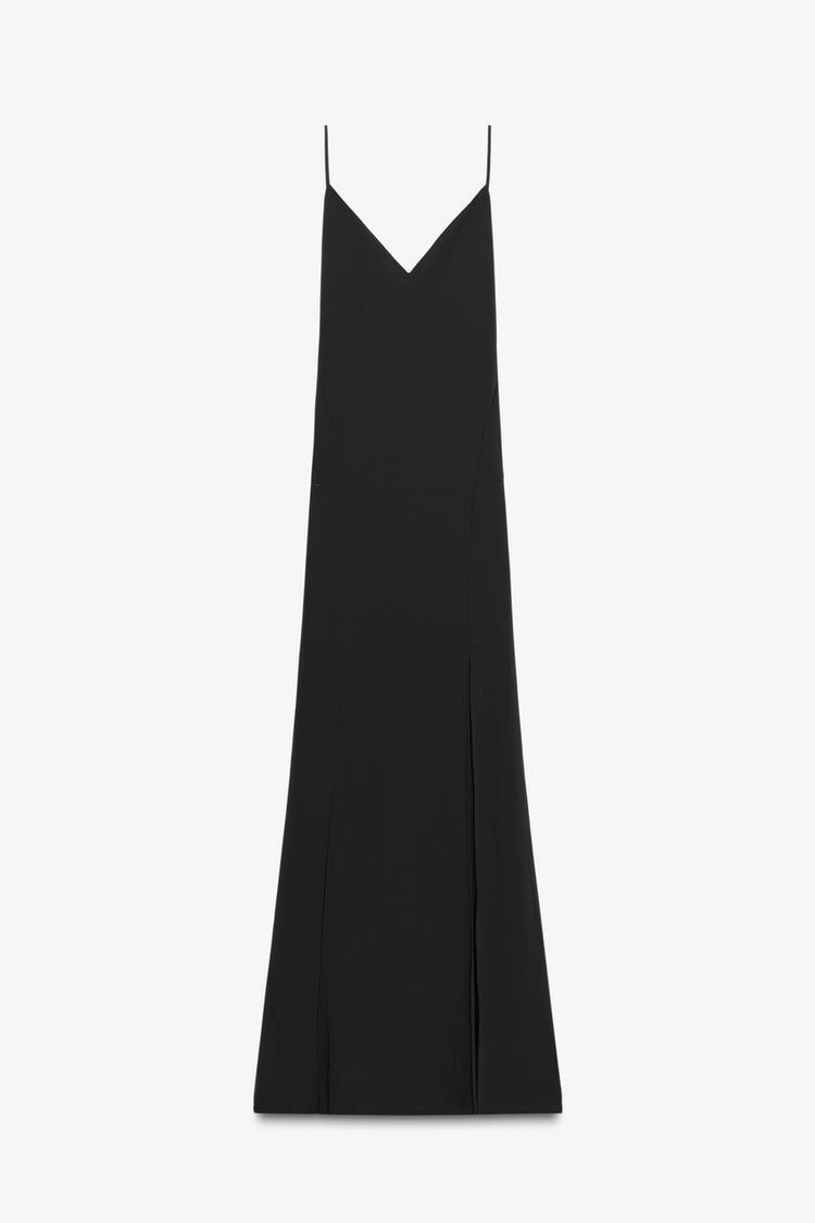 ZARA ДЛИННОЕ ПЛАТЬЕ ИЗ КРЕПА, ЧЕРНЫЙ