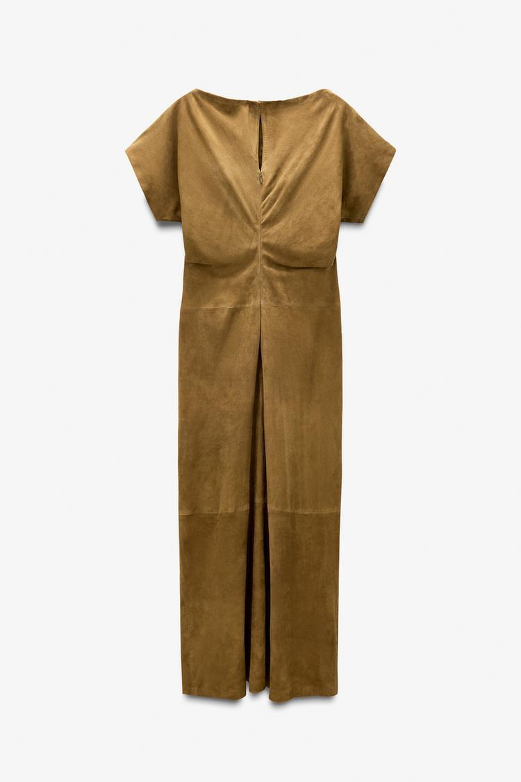 ZARA ДЛИННОЕ ПЛАТЬЕ ИЗ ЗАМШИ - LIMITED EDITION, ОЛИВКОВО-ЗЛЕНЫЙ