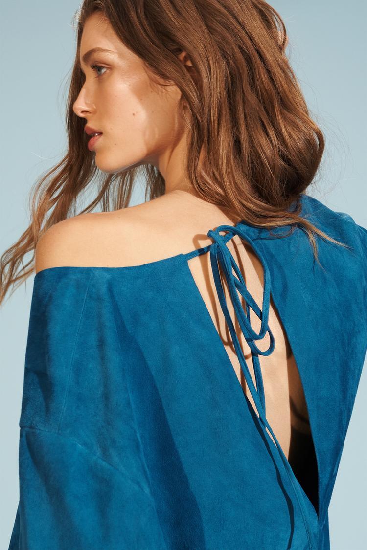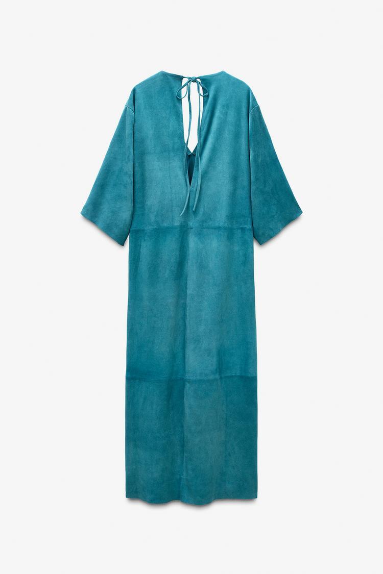 ZARA ДЛИННОЕ ПЛАТЬЕ-КАФТАН ИЗ ЗАМШИ, СИНИЙ