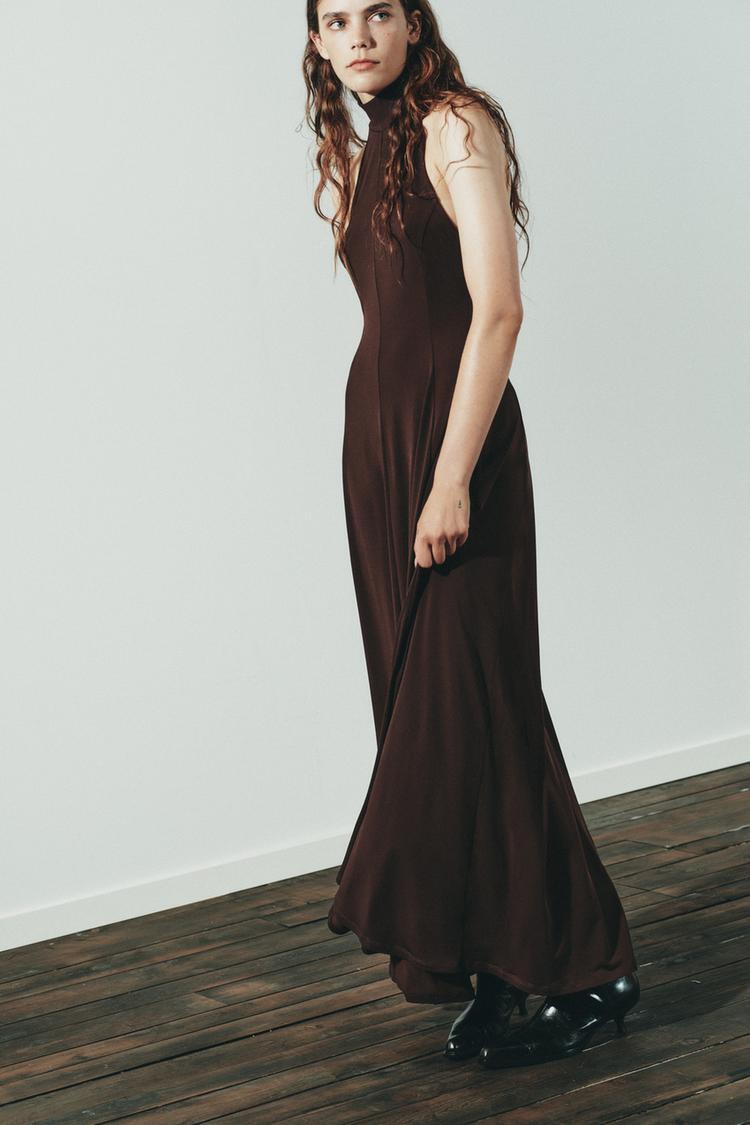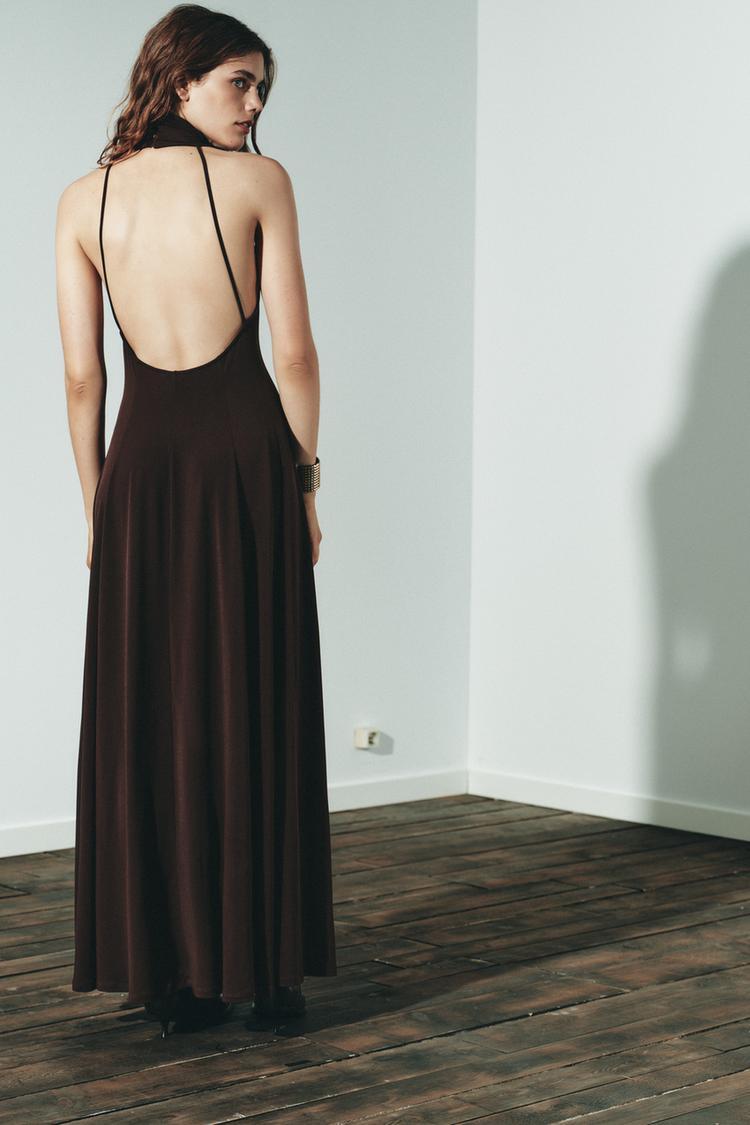 ZARA ДЛИННОЕ ПЛАТЬЕ С ОТКРЫТОЙ СПИНОЙ, БОРДОВЫЙ