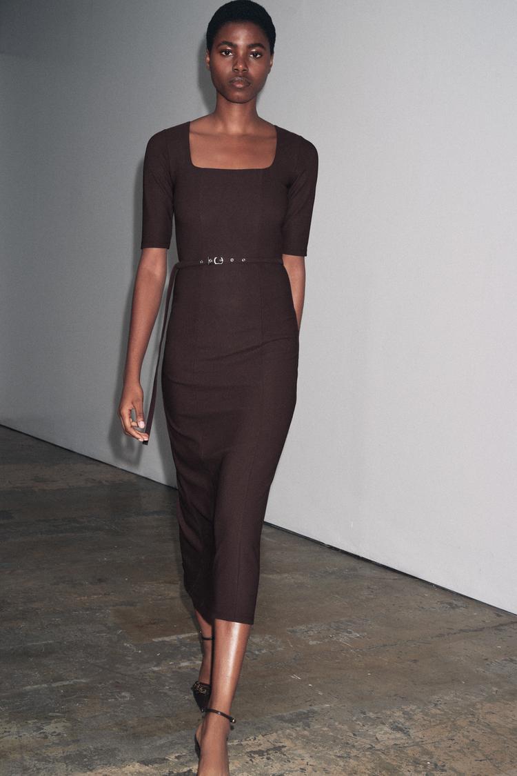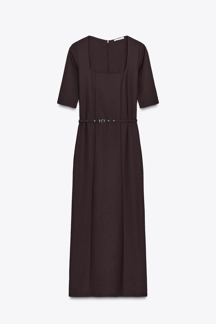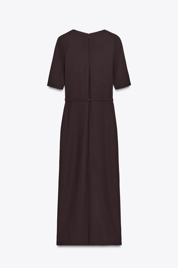 ZARA ДЛИННОЕ ПЛАТЬЕ С ПОЯСОМ, ШОКОЛАДНЫЙ