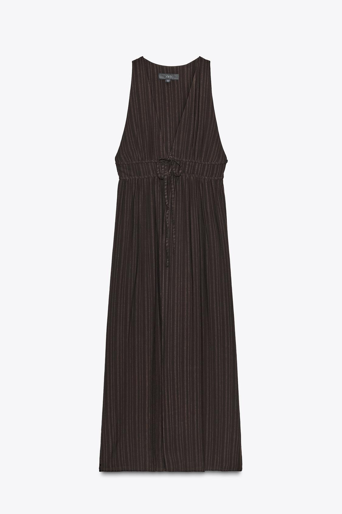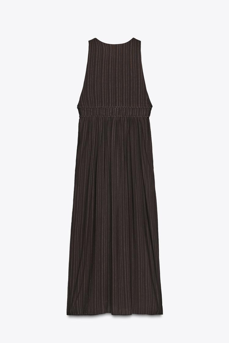 ZARA ДЛИННОЕ ПЛАТЬЕ В ПОЛОСКУ, ТЕМНО-КОРИЧНЕВЫЙ