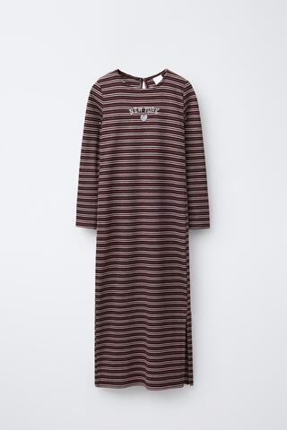 ZARA ДЛИННОЕ ПЛАТЬЕ В РУБЧИК С НАДПИСЬЮ, БУРГУНДИ