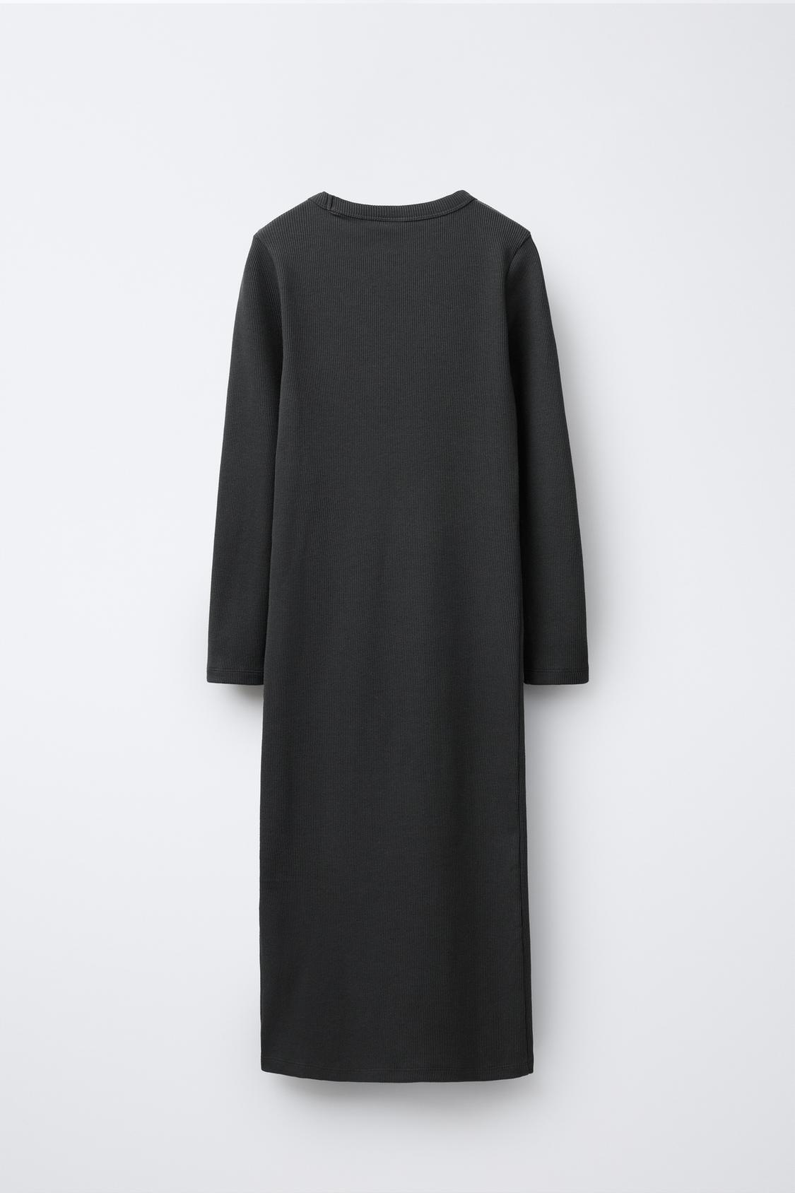 ZARA ДЛИННОЕ ПЛАТЬЕ В РУБЧИК С ТЕКСТОМ И СТРАЗАМИ, АНТРАЦИТОВО-СЕРЫЙ